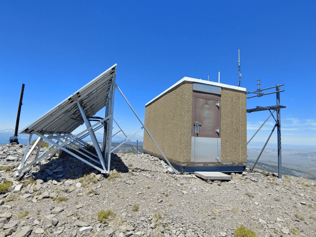 This summit has some solar powered equipment on it.