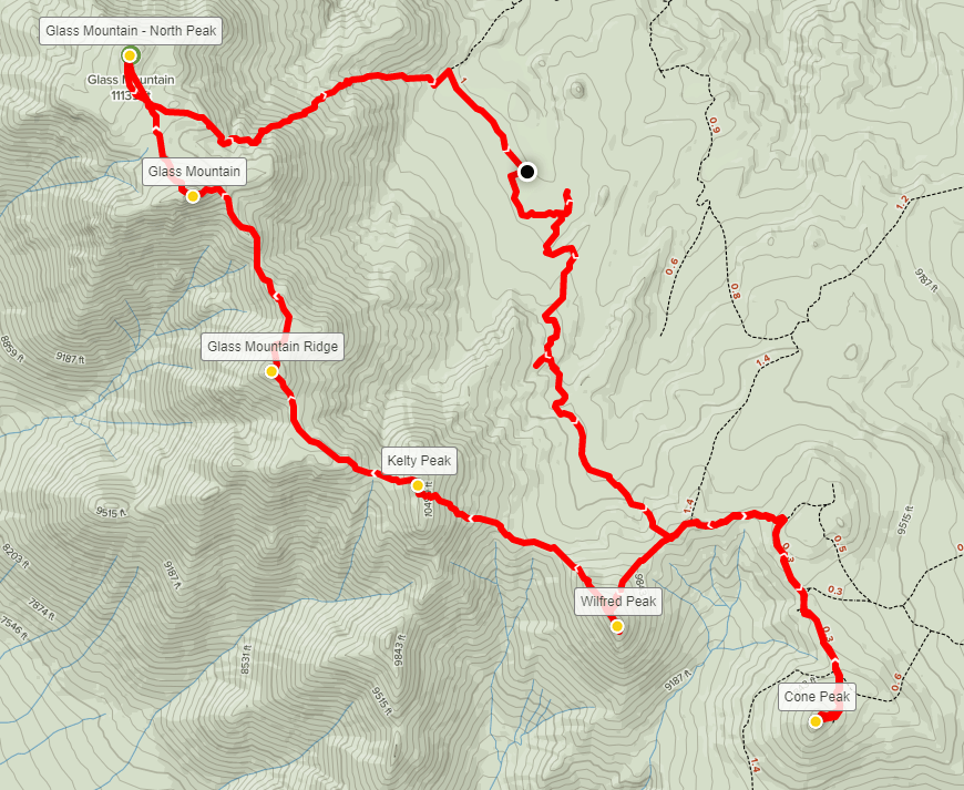 I took a 30 minute break before continuing to my final peak of this hike: Glass Mountain-North Peak. This would actually be the easiest portion of the hike, with only minimal descent and ascent between the 2 peaks.