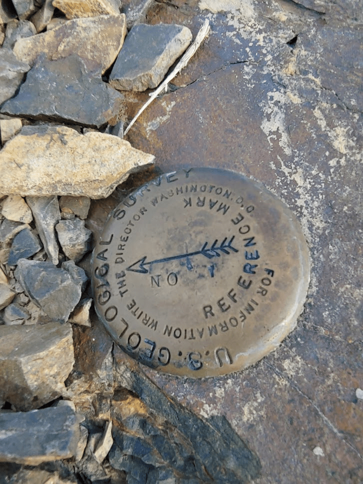 I made it to the top at 4:11pm at the 1.77 mile mark! I located the register which was pretty new. It was placed on May 21st, 2020 and only had a few entries, the most recent being June 20th. I located the USGS benchmark and 2 reference markers.
