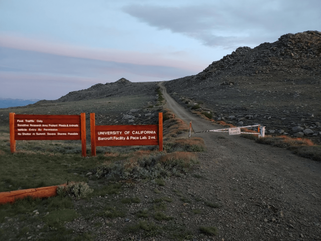 At 1.97 miles I reached the Barcroft Facility at 12,403 feet. The Barcroft Facility is a research lab operated by the University of California that studies the effects of high elevation on physiology. I didn’t see any vehicles parked at the facility or any other signs of the lab being in use currently. Apparently, they open the locked gate at the trailhead once a year to allow people to drive up to the facility to cut 4 miles off the hike.