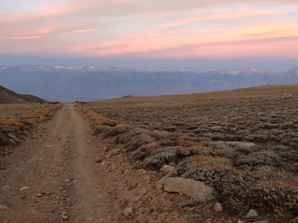 White Mountain Peak is the 3rd highest mountain in California at 14,246 feet. It trails only Mount Whitney and Mount Williamson. It is the highest desert peak in the United States and one of only three 14ers in the lower 48 that is not in the Rocky Mountains or Sierra Nevadas (the other 2 are Mount Rainier in Washington state and Mount Shasta in Northern California). Despite these superlatives, the route to the summit is relatively easy. A jeep road, which starts from a locked gate at 11,646 feet, winds its way gradually to the summit in about 7.5 miles. Because of this, White Mountain Peak is regarded as the easiest 14er in California (many climb it as an acclimatization hike for Mount Whitney). I started hiking up the road at 5:14am Sunday morning.