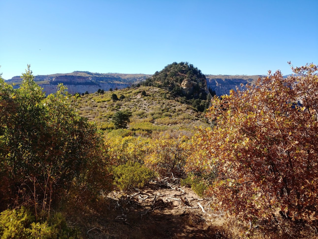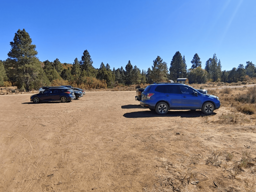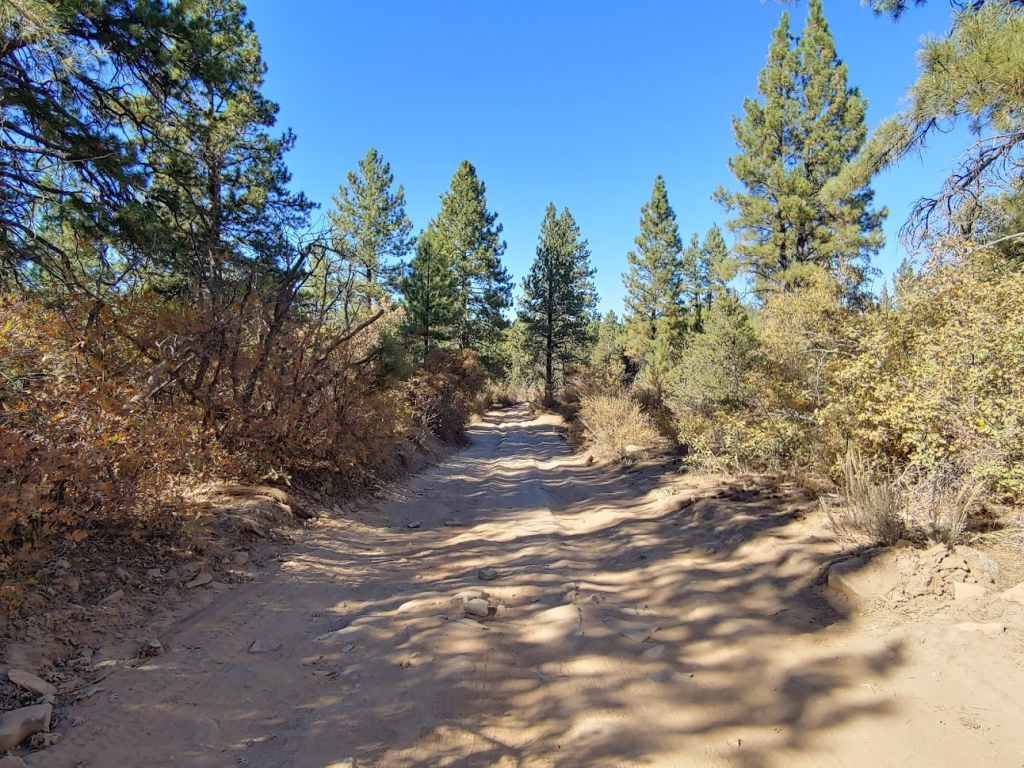 I got on the shuttle bus and rode it back to the visitor center. It felt so nice to change out of my wet clothes. I made the short drive to Springdale to return my river gear, and then headed for the East Mesa section of the park. My plan for the afternoon was to hike to Observation Point (6507 feet), which is one of the premier viewpoints of Zion Canyon. The most popular route to Observation Point starts in the canyon at the Weeping Rock shuttle stop and ascends over 2000 feet to the viewpoint. That would have been awesome, but unfortunately the trail from Weeping Rock was closed due to a rockslide in August. The other way to access Observation Point is from the East Mesa trailhead and involves a mostly flat hike through the forests on the eastern rim above the canyon. It took longer to drive there than I was hoping, as the traffic was pretty bad on State Route 9 through the park. The last half mile to the trailhead is on an okay dirt road, but I decided to park and start walking as I was really in the mood to hike on dry land. I began this hike at 3:04pm from 6501 feet.