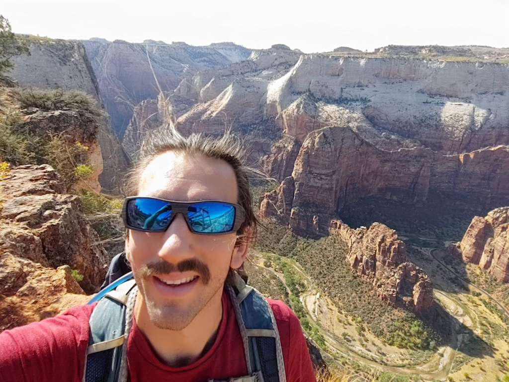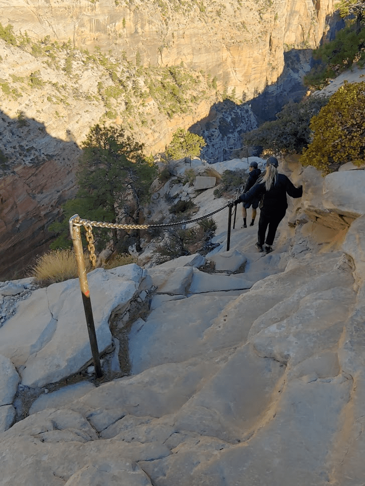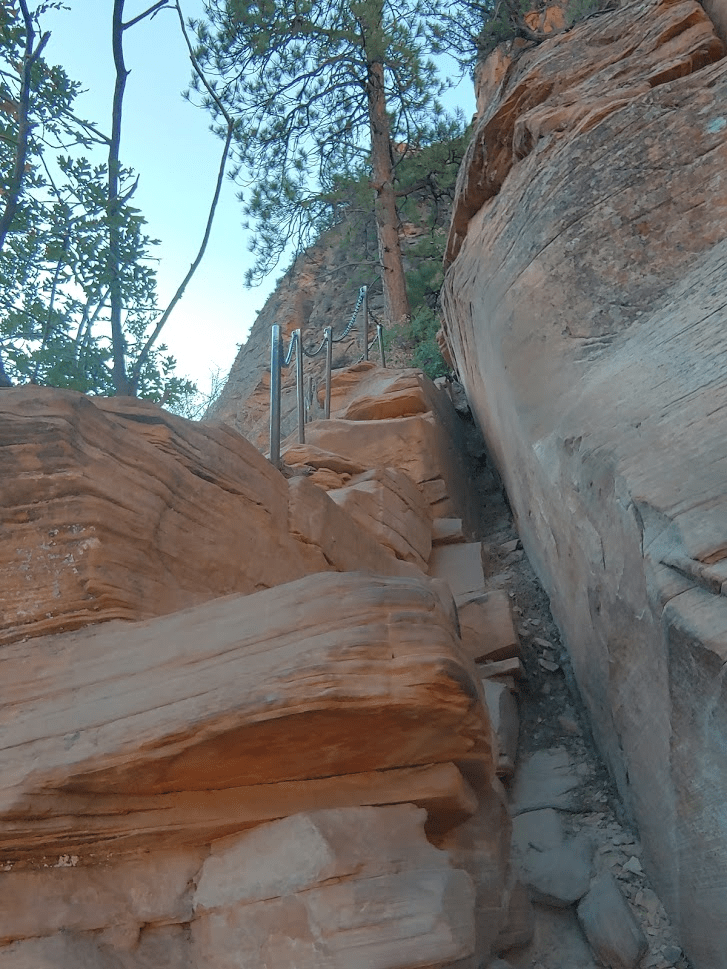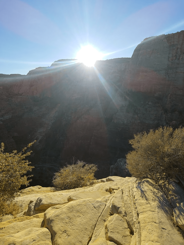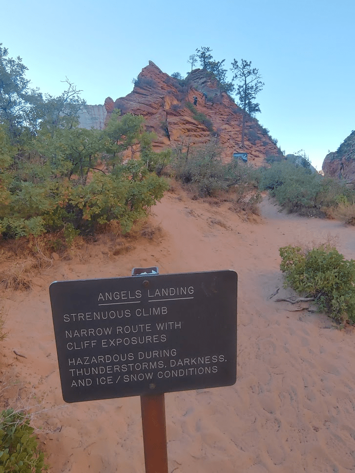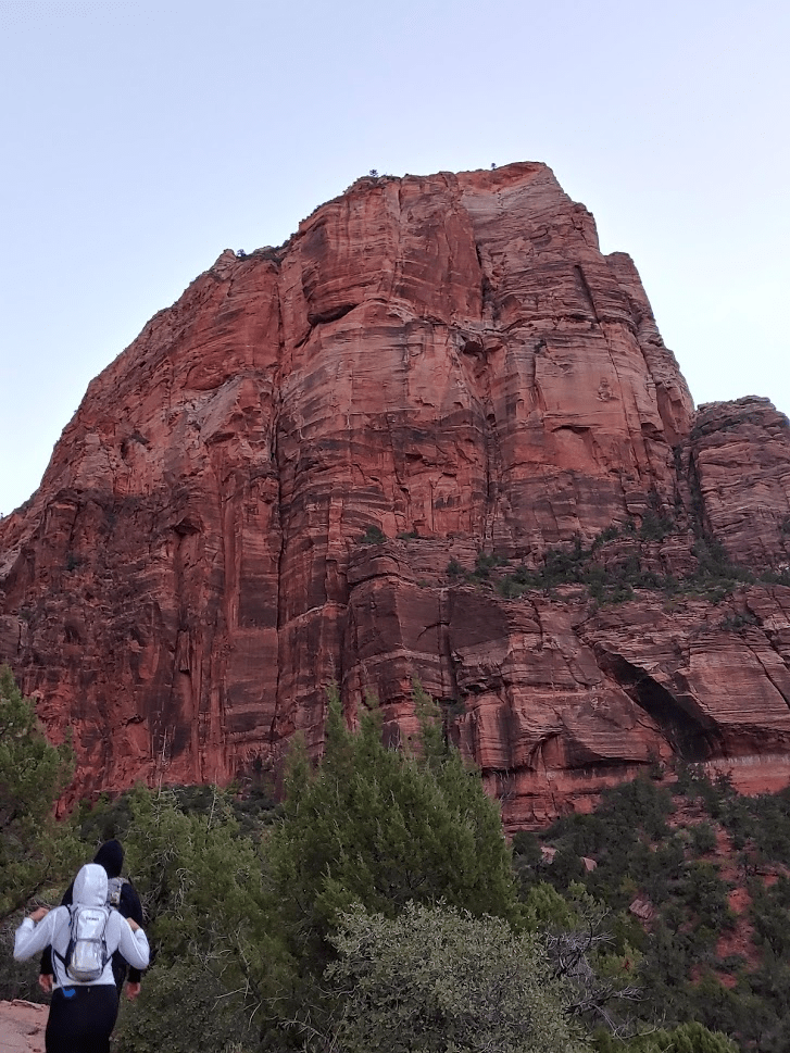 I woke up on Tuesday for my 2nd day in Zion at 5:15am. I had to get to the visitor center early again to catch the shuttle. It took about 45 minutes to drive from the East Mesa Trailhead to the visitor center. I saw 10-12 deer on the drive, mostly just off the side of the road looking for the things to nibble on. I made sure to drive carefully, but the deer all seemed so accustomed to cars driving by that they never looked like they were going to jump out into the middle of the road. It was nearly 60 degrees at the visitor center compared to 35 when I woke up on the east rim. My plan for the morning was to hike Angels Landing (5790 feet), which is Zion’s other iconic hike (along with the Narrows). Once again, it was pitch black out when I first boarded the shuttle at 7, but gradually started to get lighter as I made my way up the canyon. I got off at The Grotto shuttle stop and began hiking at 7:26am from 4270 feet.