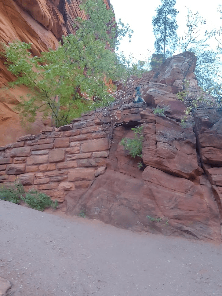 The trail makes a few switchbacks and then climbs up a canyon between Angels Landing and the adjacent rock wall. My GPS started to freak out here again.