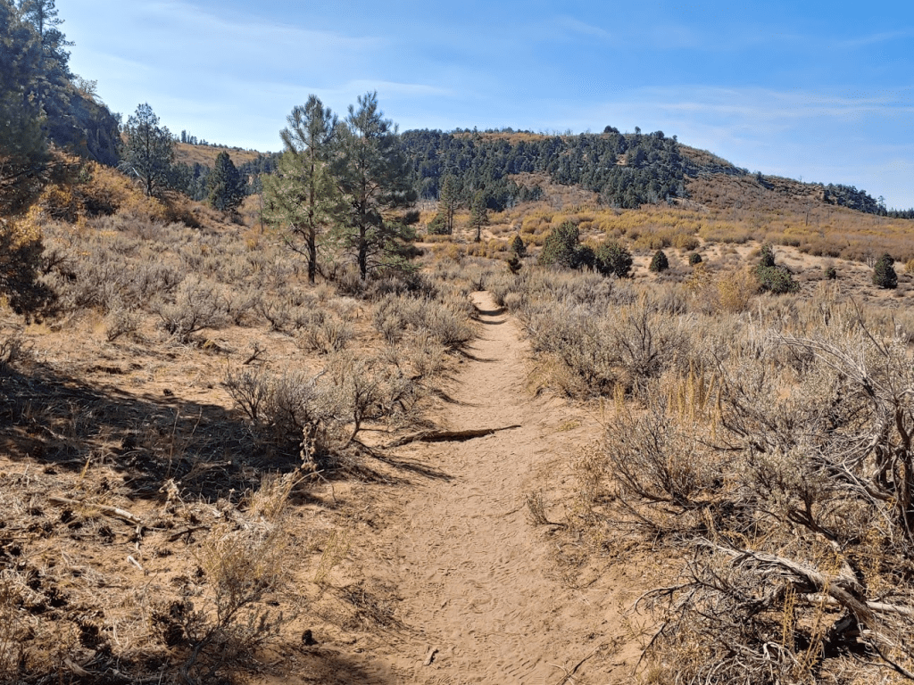 I almost immediately ran into 2 people wearing yellow jackets. They turned out to be Search and Rescue out looking for a missing hiker. I had actually noticed some signs down in the canyon earlier that day referencing a girl who was missing. They asked me if I had any information and then sent me on my way. For anyone interested, the missing hiker was found a few days later, but the story is very strange (sounds like the whole thing was possibly a Gofundme scam by her and her family). Anyway, I continued on the trail as the trees thinned out.
