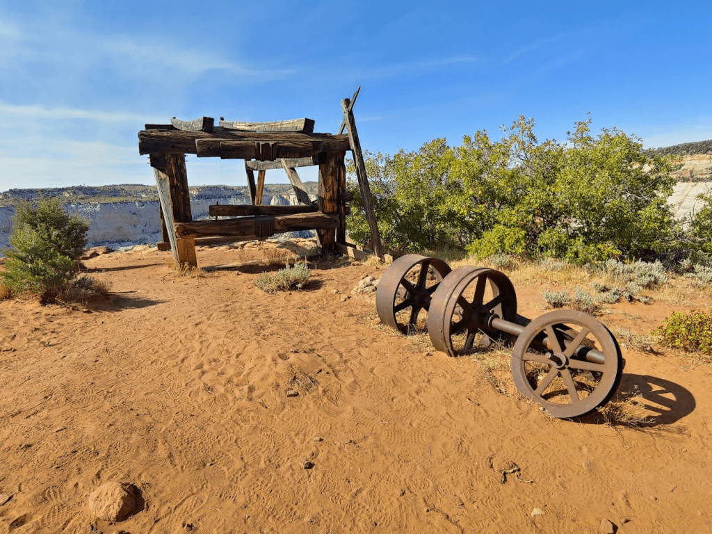 There was an old cable works on the summit that I checked out (hence the name Cable Mountain). The structure was used to lower lumber from the rim down into the canyon during construction of the Lodge in the 1920s.